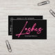 Modern glam pink neon lashes technician manicurist script logo qr code business card, add your social media, logo and qr code,
