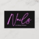 Modern glam purple neon nails technician manicurist script logo qr code business card, add your social media, logo and qr code,