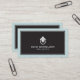 A stylish and classic business card with a hint of glamour - this card for realtors or real estate agents includes a subtle mint and white geometric patterned background with your name or business name elegantly displayed in a black and white framed box with a vintage door knocker logo. Designed by 1201AM, a boutique design agency specialising in logo design and brand moments for small businesses and individuals. © 1201AM CREATIVE