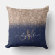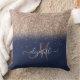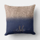 Modern Glitter Ombre Monogram Navy Blue Cushion