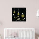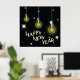 decorate your home or event space with this stunning happy new year poster featuring a modern light bulb theme. the high contrast design showcases three hanging incandescent bulbs glowing with a warm yellow light against a deep black background. sparkling white starbursts and elegant typography create a sophisticated atmosphere for any holiday party or office celebration. this artistic print serves as an inspirational focal point, representing bright ideas and a brilliant future for the coming year. it is a perfect choice for those who appreciate contemporary holiday decor and minimalist graphic art.