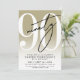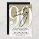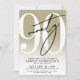 Celebrate ninety years with this modern birthday invitation featuring a smooth gold-to-white gradient background for a clean, elegant look. A large white “90” stretches across most of the design, giving the card a bold yet minimal style. The handwritten script word “Ninety” appears in black, adding a soft, modern touch. All party details sit neatly at the bottom in black sans serif text, keeping everything easy to read and polished. This simple, versatile layout works well for both men and women, and all colors can be updated to match your style. Available as a printed invitation or a digital file you can share or print anywhere.