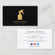 Modern trendy gold and black business card designed for a commercial or residential services for cleaning, housekeeper, maid service, or janitorial supplies. Design featuring of gold cleaning spray icon. Customise the front with two lines of custom text on a black background, and add your full contact details to the back and social media details. Trendy chic modern design.