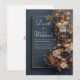 Introduce your special occasion with understated elegance using this Modern Gold and Floral Wedding Invitation. Featuring a rich, deep charcoal background, this design is beautifully framed with a sleek gold border. The right side is adorned with delicate golden blossoms and soft white floral accents, creating a striking contrast that feels both modern and timeless.