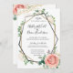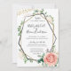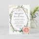 Modern Gold and Pink Geometric Wedding Invitation. These greenery foliage invites will do the trick! this customisable invite features a modern geometric frame with faux gold glitter and black. The borders are adorned with green foliage such as eucalyptus, berries and pink and cream roses flowers. The sides are adorned with faux gold glitter. This makes a great modern foliage invite.