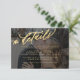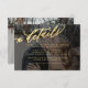 Modern romantic chic moody gold and black overlay wedding guest information accommodation direction details text template card enclosure with your 2 custom photos (front and back) in trendy faux vellum dark transparent with white classy handwriting calligraphy script. +++++++++++ Easy to personalise with your info and engagement pictures on both sides! ++++++++++ Suitable for any season elegant wedding theme.