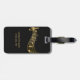 This modern gold and black custom luggage tag features music notes and a treble clef on music staves, complemented by elegant script typography. It's an ideal accessory for professional musicians, violin teachers, piano students, flautists, and music lovers who wish to travel in style. Personalise it with your details and use the editing tool to adjust the font's size and placement according to your preferences.