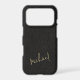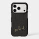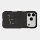 Elegant luxury exclusive phone case on a faux leather look (PRINTED) background with simple signature script name. Personalize it with your name!