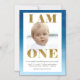 Modern gold watercolor lettering "I AM ONE" highlight the photo of your baby's 1st birthday MAGNETIC invitation. Available in other colour combinations you can easily add you party details to this first birthday invitation template. The border of this kids birthday invitation is in a blue watercolor wash.