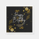 A modern, stylish and glamourous birthday napkin. This design features a vibrant typography "Happy Birthday" with gold gradient bokeh on a black background. Personalise and add your party details. Make your milestone birthday an extraordinary event!