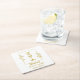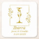 Pretty square paper coaster features gold hand-drawn botanical frame with botanical letter I in centre. Personalise with couple's name, date or other message.