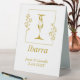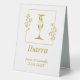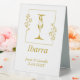 Stylish wedding table tent sign features modern gold hand-drawn botanical frame with botanical letter I in centre. Personalise with couple's name, date or other message.