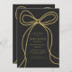 This elegant black and gold graduation party non photo invitation features a chic gold doodle bow with graduation party details in classic typography on a classic black background. Shop this graduation collection for coordinating mailing accessories and minimalist graduation save the date announcements.