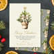 Modern Gold Bow Neutral Watercolor Christmas Tree Holiday Card