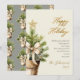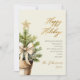 Modern Gold Bow Watercolor Christmas Tree Happy Holiday Card