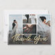 Modern Gold Script Typography is simple trendy and chic, with dark fading gradient to highlight text, and gold lettering. Personalise it with your 5 pictures. Shown in faux gold foil lettering. - Wedding Thank You Photo Cards!