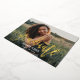 Two sided graduation party invitations feature a photo announcement on the front and a modern and minimalistic elegant script "graduate" overlay in real gold foil with white monogram design. The back of the card features graduation celebration invitation information that can be completely customised for your special graduation event.