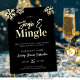 An elegant and modern company holiday party invitation featuring a sleek black background with real gold foil accents and festive script typography. The shimmering “Jingle and Mingle” lettering adds a luxurious touch, making it perfect for a sophisticated corporate celebration while keeping the holiday spirit bright and stylish.
