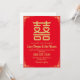 Celebrate your special day with this elegant and chic Chinese wedding invitation. Featuring a timeless blend of traditional red and gold colours, this invitation is sure to impress your guests. The intricate design incorporates the iconic double happiness symbol, a symbol of love and happiness in Chinese culture. This modern twist on a classic design will add a touch of sophistication to your wedding. Perfect for couples seeking an Asian-inspired celebration that is both elegant and memorable.