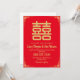 Celebrate your special day with this elegant and chic Chinese wedding invitation. Featuring a timeless blend of traditional red and gold colours, this invitation is sure to impress your guests. The intricate design incorporates the iconic double happiness symbol, a symbol of love and happiness in Chinese culture. This modern twist on a classic design will add a touch of sophistication to your wedding. Perfect for couples seeking an Asian-inspired celebration that is both elegant and memorable.