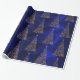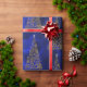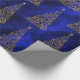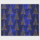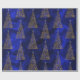Modern Gold Christmas Trees on Blue Silk Wrapping Paper