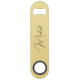 Create your own custom, personalised, modern elegant black calligraphy typography script font monogrammed on faux gold background, trendy chic stylish cool professional extra durable stainless steel speed bottle opener bar key featuring a length and design to open bottles with speed and ease. Simply type in your name / family name, to customise. Makes a great gift for birthday, christmas, holidays, wedding, graduation, fathers day, friendship day, special tastings, milestone birthdays, and more, for your loved ones, mum, dad, girlfriend, boyfriend, husband, wife, couples, newlyweds, beer lovers, bartenders, men, women, him, her, friends and family.
