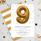 Modern Gold Foil Balloon 9th Birthday Invitation