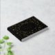 Modern gold foil leaves and frame black wedding guest book. This design features a lovely pattern of leaves and your wording all in gold foil in a black frame with gold outline all on black background. The back includes the same pattern of gold leaves.