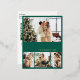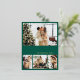 Elegant Calligraphy Minimalist Gold Foil Script Green 4 Photo Collage Merry Christmas Holiday Card. This festive, mimimalist, whimsical four (4) photo holiday card template features a pretty photo collage and says „Merry Christmas”! The „Merry Christmas” greeting text is written in a beautiful hand lettered swirly swash-tail font type in gold on green colour background. On the reverse side with greeting text template with a little heart doodle on white and one horizontal photo template. Pretty greeting card for your family and friends in Christmas Holiday season.