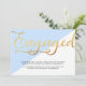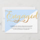 Tell the world that you're engaged with these super trendy announcements featuring a modern blue and white background with chic gold foil script typography.