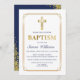 Modern Gold Frame Glitter Navy Blue Baptism Invitation