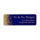 These address labels have a gold glitter effect on a rich royal blue background. The font style, colour and placement can be changed any way you like by going to the customise menu. This is part of a wedding suite that includes a matching invitation, envelope, menu and many more items.