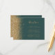 The left-hand edge of this elegant modern wedding reception enclosure card features a gold faux glitter design. The customisable text combines gold-coloured handwriting, copperplate and italic fonts on a dark green background. The reverse side features a matching green and gold glitter design.
