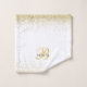 An elegant trendy monogrammed bath towel set featuring a gold monogram on white with gold glitter and script typography name. A great gift for someone who loves personalised monogram style bath decor.