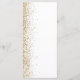 The left-hand edge of this elegant modern wedding menu features a gold faux glitter design. The customisable text combines gold-coloured handwriting, copperplate and italic fonts on a white background. The reverse side features a matching white and gold glitter design.