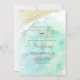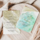 This modern gold green calligraphy front and back wedding invitation is perfect for a rustic wedding. The simple and elegant design features classic and fancy script typography in a gold and green background.