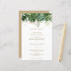 Modern botanical wedding menu with a top border consisting of watercolor painted tropical greenery and faux gold leaves. These cheap wedding menus with an elegant tropical theme are printed on sheets of paper for a budget friendly option and are perfect for a summer destination wedding.