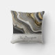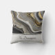 A pillow with an abstract design with an agate geode mineral pattern. Gold, grey, white, and black swirl together forming elegant waves of colour. Perfect for conveying an air of class and elegance.