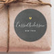 Modern Gold Heart Calligraphy Brand Name Grey Classic Round Sticker