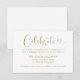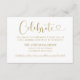 Modern antique gold and white (colours can be modified) wedding reception enclosure card features a stylish typography design with chic calligraphy script and a heart accent. The simple and elegant custom text that can be personalised to invite guests to "Celebrate" the wedding, including the reception location name, address, and arrival time.