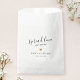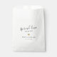 Custom-designed face mask favour bags for bridal shower, wedding, or any event featuring "spread love not germs" modern hand calligraphy with gold glitter heart design.