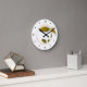 A gold brown horse silhouette walks out of a circle on this unique clock. The colour of the horse image shows a tinge of yellow green in areas to add interest. The gold numbers and diamond marks make it easy to read. The image and numbers are placed on a white background. *Clip art used in this design is copyrighted by Encore Software, Inc., which permits use to its licensors. All rights reserved.