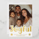 This warm and cheerful holiday design brings a bright touch of gold foil to your family photo. The bold “Joyful” lettering gives the card a lively personality, while the minimalist layout keeps the focus on your picture. The texture paired with metallic shine creates a classic yet modern look that works beautifully for cozy winter portraits. Ideal for families who want a stylish and uplifting Christmas greeting with a clean, contemporary feel.