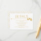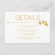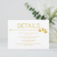 This Details enclosure card is an elegant choice for any wedding, featuring a gold line with a branch and leaves on one side and a single dot on the other, set against a white background. The reverse side features a customisable diagonal pattern with the couple's names in gold, adding a graceful touch. If the names take up more or less space, simply adjust the font size accordingly.