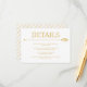 This wedding enclosure card with details of your wedding is an elegant addition to your special day, with a unique gold line with leaf and arrow design against a dark background. For a sophisticated touch, the backside showcases the couple's names in gold on black in a diagonal pattern - please note that if your names take up more or less space, the text size can be adjusted accordingly.