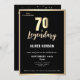 Modern Gold Metallic Surprise 70th Birthday Invitation. Celebrate a milestone in style with our Elegant Black & Gold 70th Birthday invite. Featuring a sophisticated black background adorned with luxurious gold faux foil, this design adds a touch of class to any celebration. This invitation is perfect for making the guest of honour feel extra special. Make turning 70 unforgettable with this timeless and chic design!
