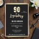 Modern Gold Metallic Surprise 90th Birthday Invitation. Celebrate a milestone in style with our Elegant Black & Gold 90th Birthday invite. Featuring a sophisticated black background adorned with luxurious gold faux foil, this design adds a touch of class to any celebration. This invitation is perfect for making the guest of honor feel extra special. Make turning 90 unforgettable with this timeless and chic design!