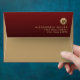Modern Luxury Brushed Metallic Gold Monogram Medallion Ruby Red Gradient Professional Return Address Envelope. Customise your envelopes with your monogram initial, name and return address.