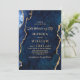 Modern Gold Navy Blue Marble Agate Wedding Invitation