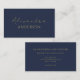 A simple stylish custom monogram design with a modern minimalist handwritten script typography paired with a block typography in gold on an elegant navy blue background. The name, title and contact details can be easily personalised for a unique and professional design statement to promote your business.